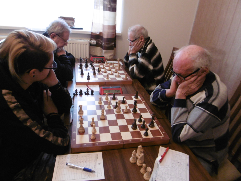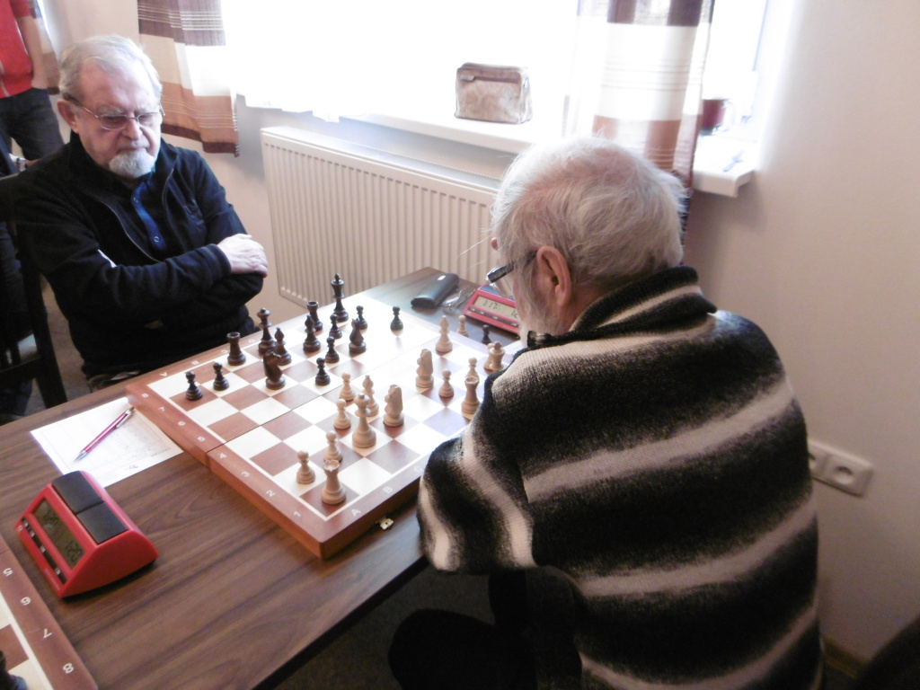 Moje partie nebyla bez nepřesností (přítomnost juniora, přítomnost sobotního mejdanu v Čertově dole), naštěstí soupeř v perspektivní pozici nejprve s výrazně lepším časem nabízel remízu, pak si zalezl do pasivní koncovky a nechal se postupně uškrtit, závěrečný gong přesně ve 40. tahu.
