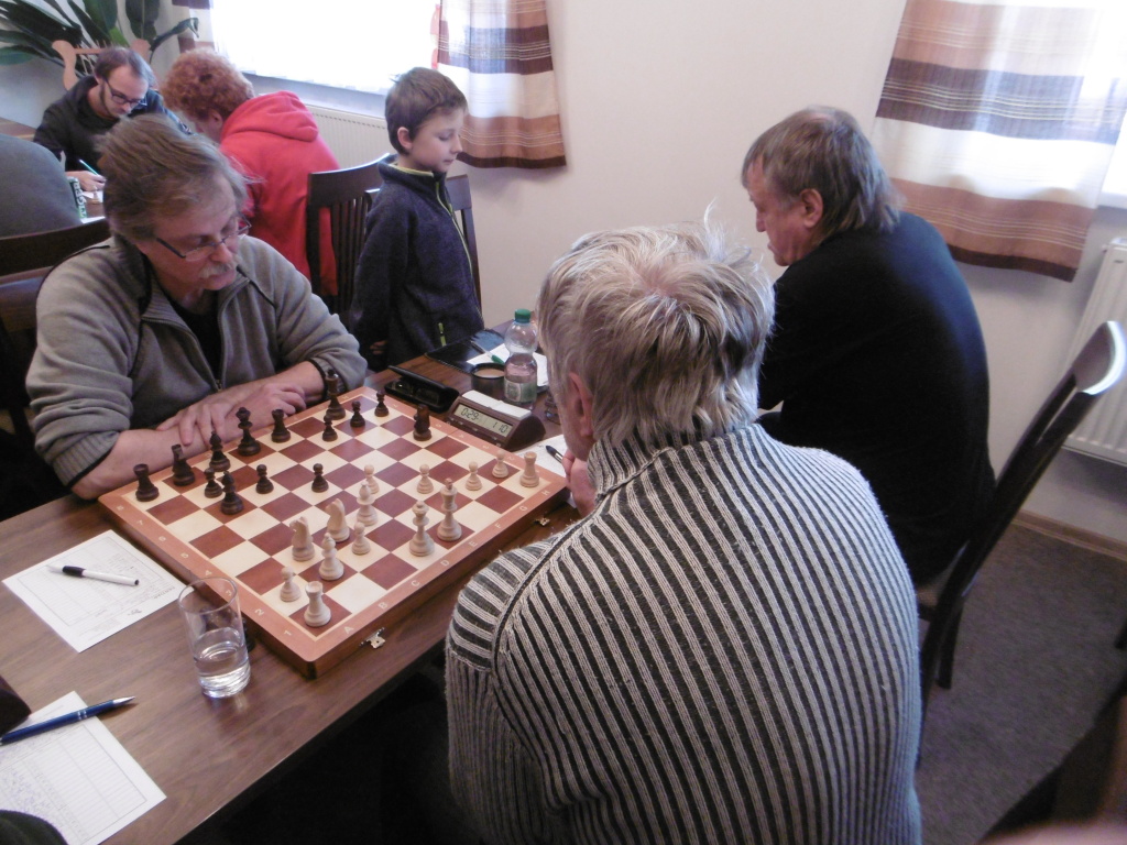 Pak remizoval náš lídr Petr, jehož mladý soupeř hrál urychleného draka hlavně na jistotu, měnil, hlídal a uhlídal – korektní půlka, potřebovali bychom víc, ale těžko z pozice něco hmatatelného vydolovat.