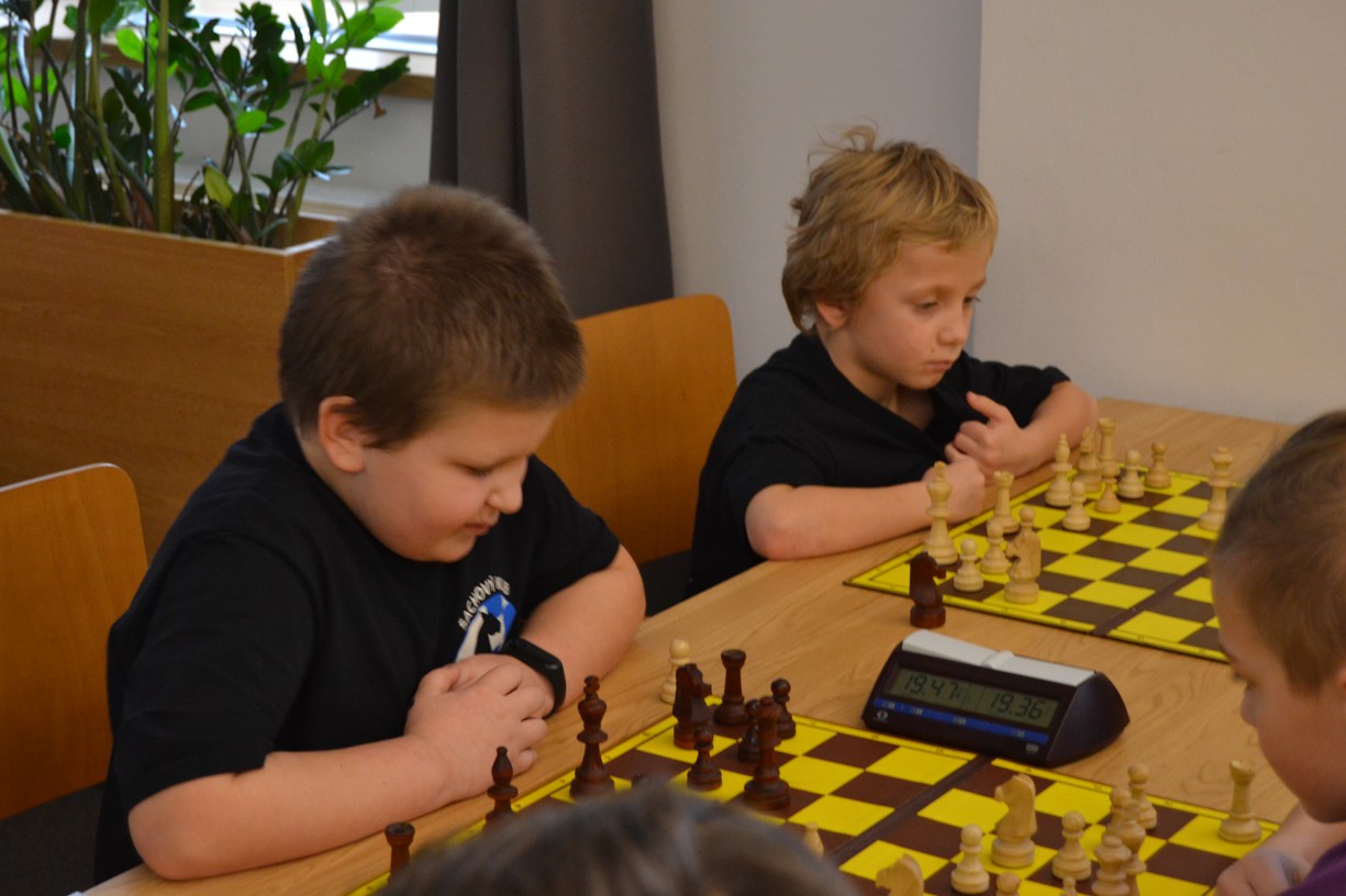 Výsledky najdete na chess-results, já je ani nechci moc rozebírat.  Elen a Tomáš si vepředu počínali suverénně, prohráli jen se dvojicí Brožka – Bouška. Vítek Růžička to měl na třetí desce těžké, ale patří tam. Matěj Křížek se po krůčkách zlepšuje a body dělal. David Hanák byl na turnaji po delší pauze a chybí mu praxe. Vojta Tomik hraje pořád to svoje – přímočaře na krále, ať u toho nastaví figurek, kolik chce. A vzadu maličký Jakub Vítek už ledacos vidí, ale zároveň mnoho nevidí, takže i vyhranou pozici dokáže během pár tahů odevzdat.