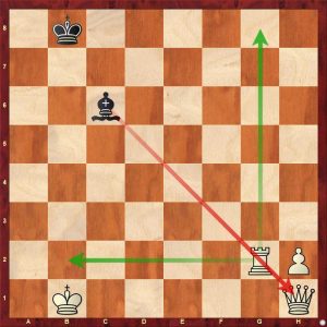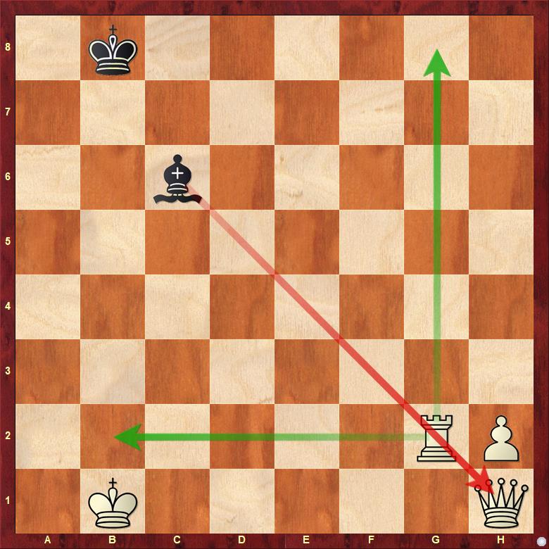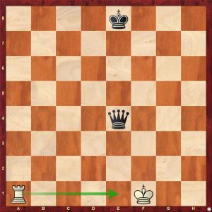 Věž váže po sloupci i řadě. Zde tahem 1. Ve1 získá černou dámu.