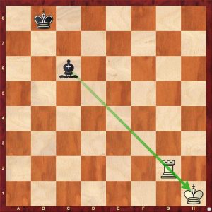 Vazba ke králi je absolutní, figura hrát vůbec nesmí. Zde je absolutně vázána bílá věž.