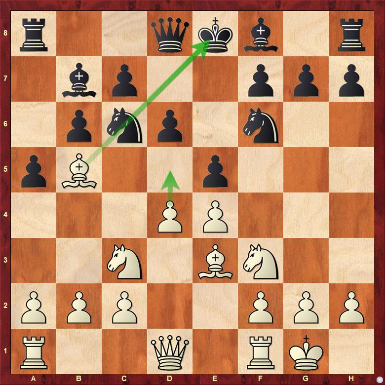 A zde podobně po 1. d5. Je to kruté: nejdřív ho upevníme do svěráku, pak ho, bezmocného, napíchneme na špendlík.