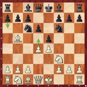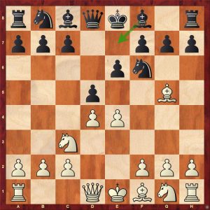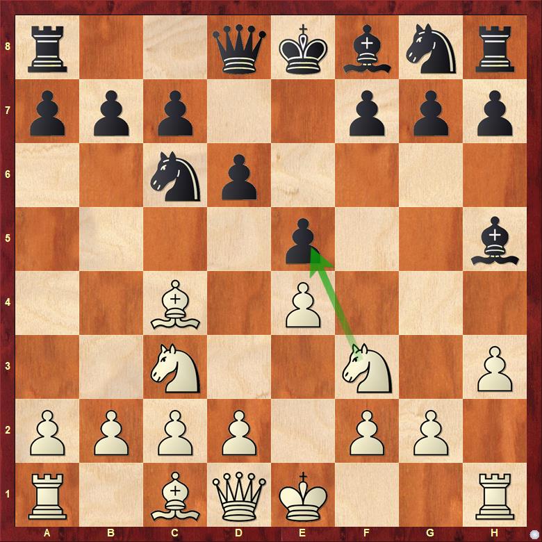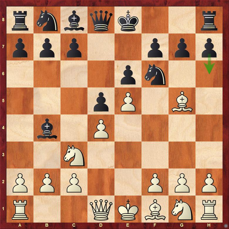 7. … h6 To už známe, že? 8. Sh4 g5 9. Jxg5 Bílý tu obětuje jezdce a díky vazbě ho pak získá zpět. 9. … hxg5 10. Sxg5 a varianta se šíleným zápletkami tu teprve začíná …
