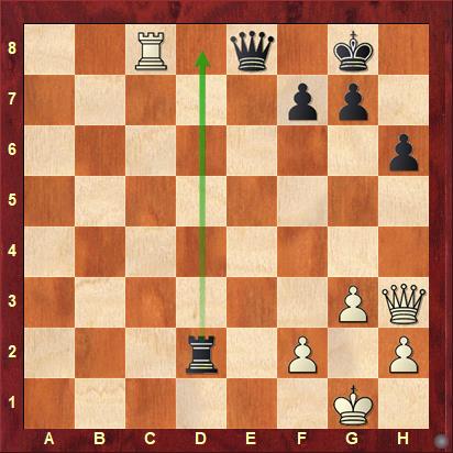 Černému hrozí, že přijde o dámu, ale 1. … Vd8 všechno řeší.