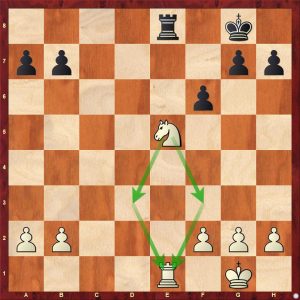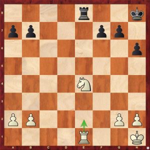 Černý zahrál f6 a rád by vázaného jezdce získal, po 1. Jf3 nebo 1. Jd3 je ale věž kryta.