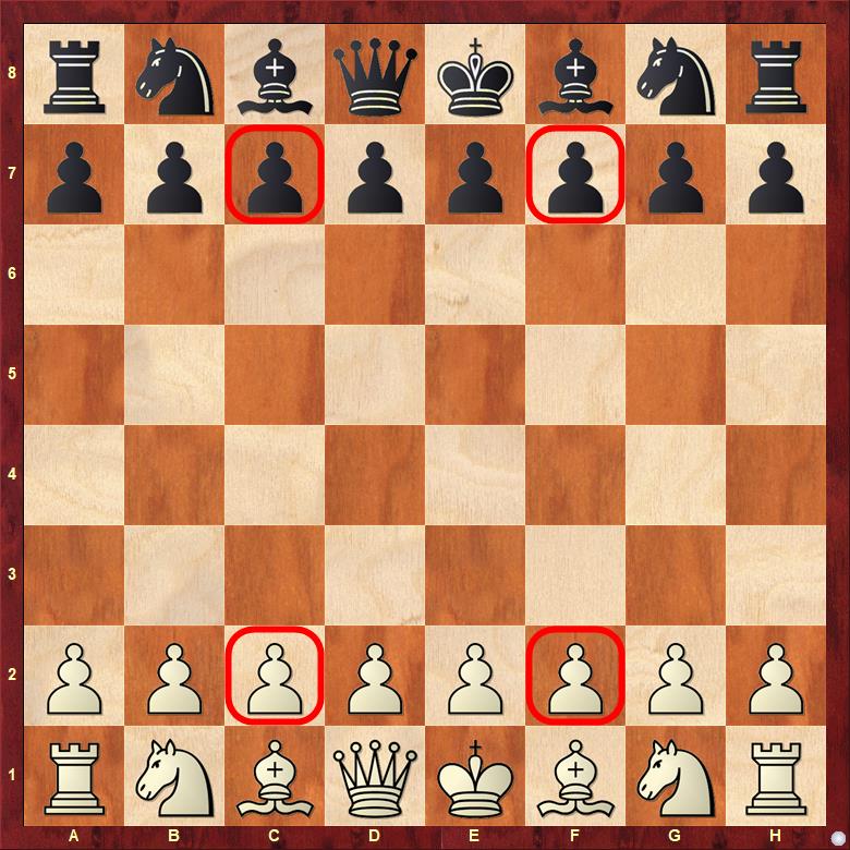 bílý hrozí vidličku na f7 dát a slabší hráč si s tím neví vůbec rady, takže často ztratí věž nebo zahraje nesmyslné 4. … De7 apod. Správná obrana je 4. … d5! a po 5. exd5 např. 5. … Ja5!, ale to už jsou varianty pro hráče minimálně 3. VT. Proto je pro začátečníka bezpečnější hrát italskou, tedy místo 3. … Jf6 3. … Sc5 (pak nejde 4. Jg5 pro Dxg5 5. d4 – pozor, dáma! – Dxg2).