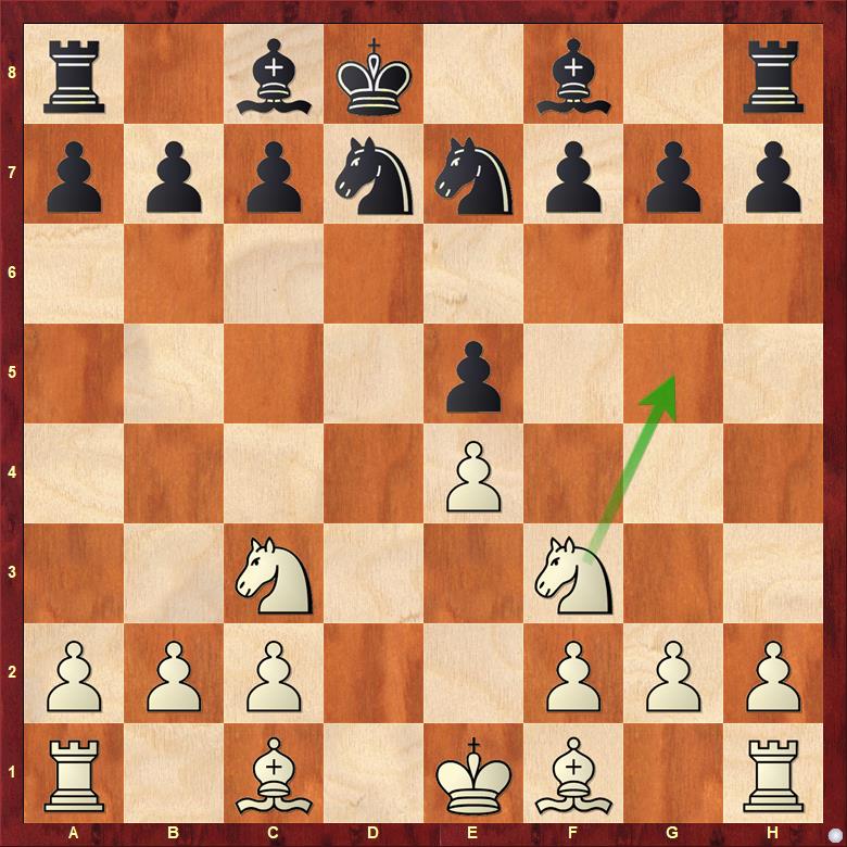 Např. po 1. e4 e5 2. Jf3 Jc6 3. Sc4 Jf6 (hra dvou jezdců v obraně) 4. Jg5