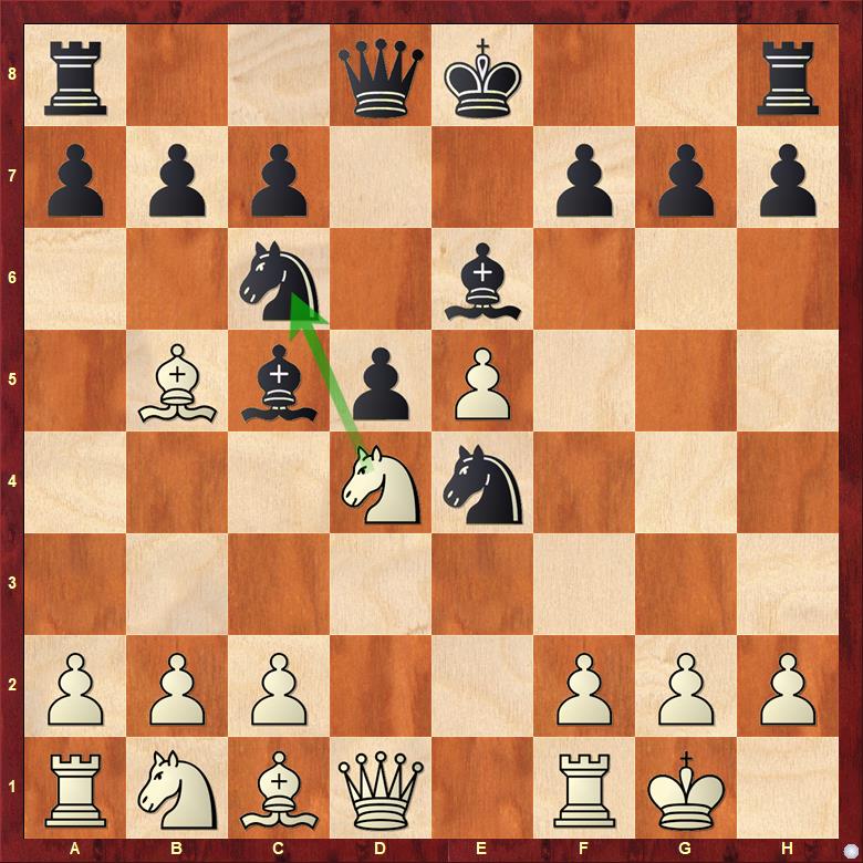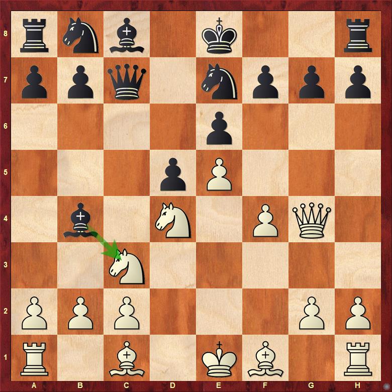 Tady si zase nedal pozor bílý, po 1. … Sxc3+ 2. bxc3 Dxc3+ je napaden král, věž i jezdec!