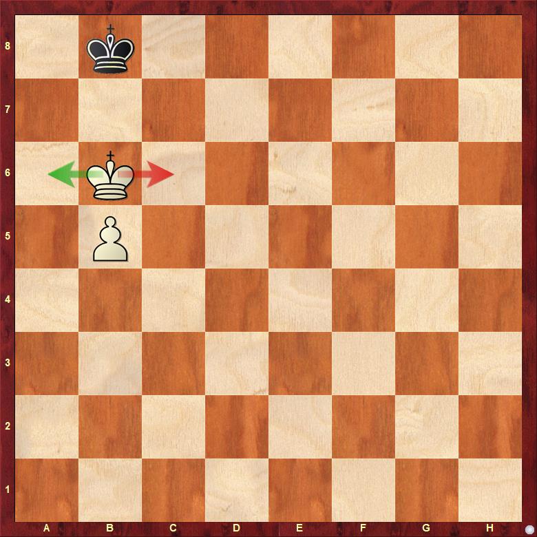 (Bílý se ještě může opravit po 2. Kc7 Ka8 3. Kb6 /ne 3. b6?? pat/ Kb8 a jsme v úvodní pozici, takže 4. Ka6! atd.) Nebojte se v partii přiznat chybu a vrátit se, je-li to správné.