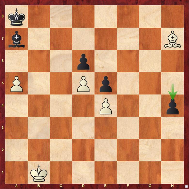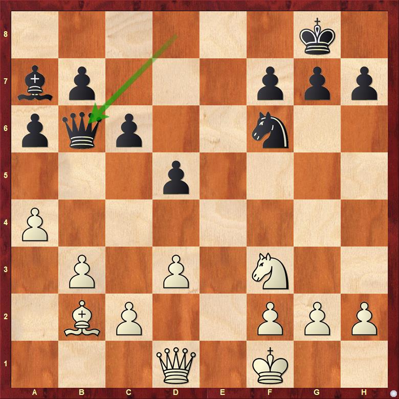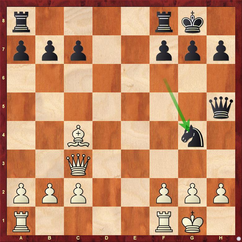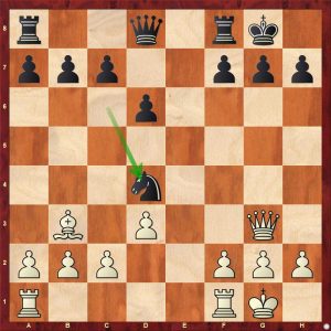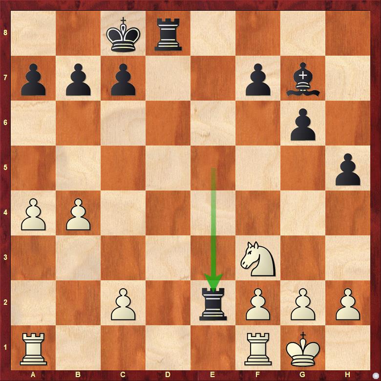 10) Černý se nenápadně uhnul koněm a hrozí smrtící dvojšach, totiž Sb4++ mat! Druhou hrozbou je ještě Sa3+! s dalším Sxb2. Proto je nejlepší 1. Se2!