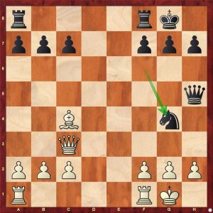 2) Černý hrozí Dxh2 mat. Figury v blízkosti krále musí vést k nejvyššímu stupni poplachu! Obranou je tah h3 nebo Dg3, o něco horší je Dh3.