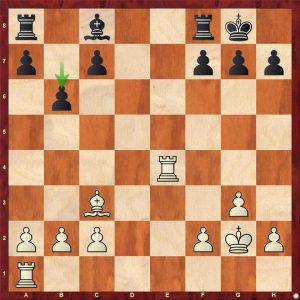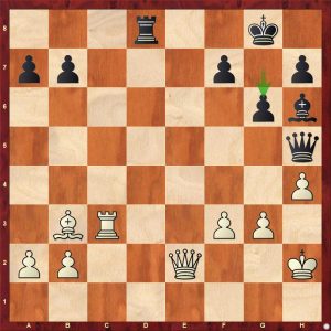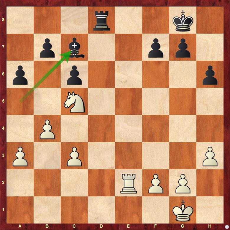 7) Černý hrál věží, ale hlavní hrozbu vytváří černý střelec, který chce vzít věž (Sxa1). Bílý asi nejlépe pokryje věží pěšce c2 (1. Va2!), může odjet i jinam.