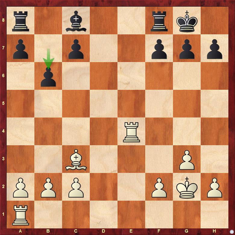6) Hrozí Sb7 se svázáním bílé věže. Věží lze ustoupit (1. Ve7!), lze hrát 1. f3, lze i ustoupit králem.