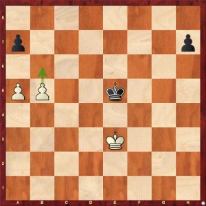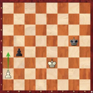 10. Bílý ví, že když půjde králem sebrat b pěšce, černý král se dostane do rohu a pozice s krajním pěšcem je remízová. Napadlo ho ale, že po 1. a4 černý král nebude ve čtverci, kdežto bílý král ve čtverci černého pěšce ano.