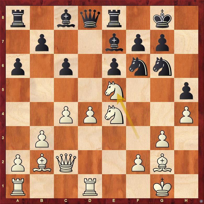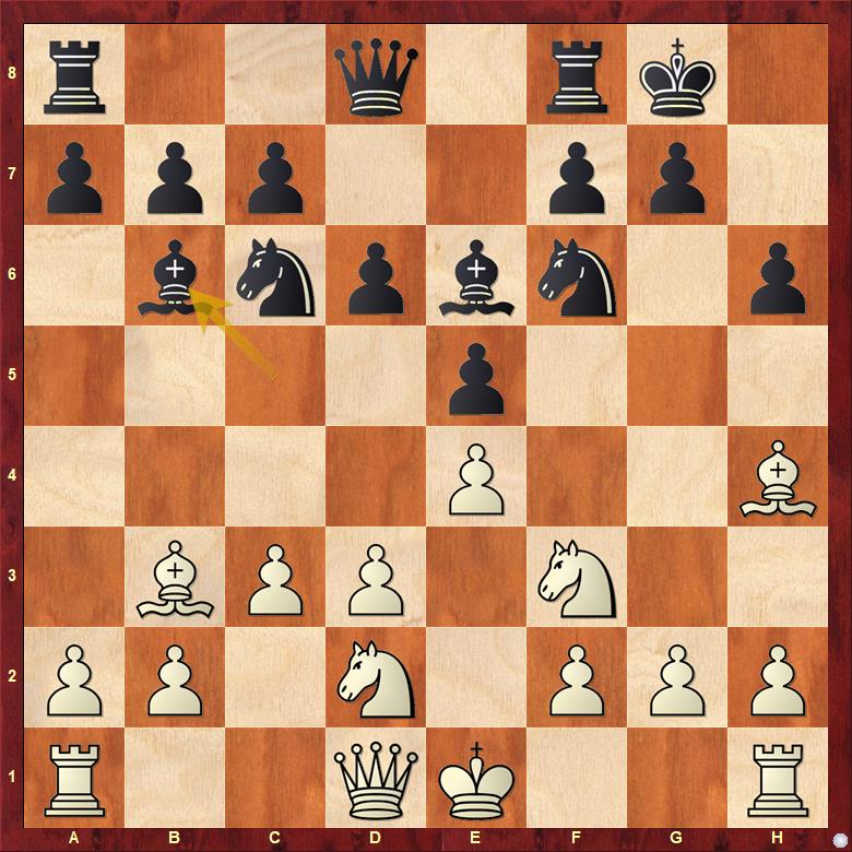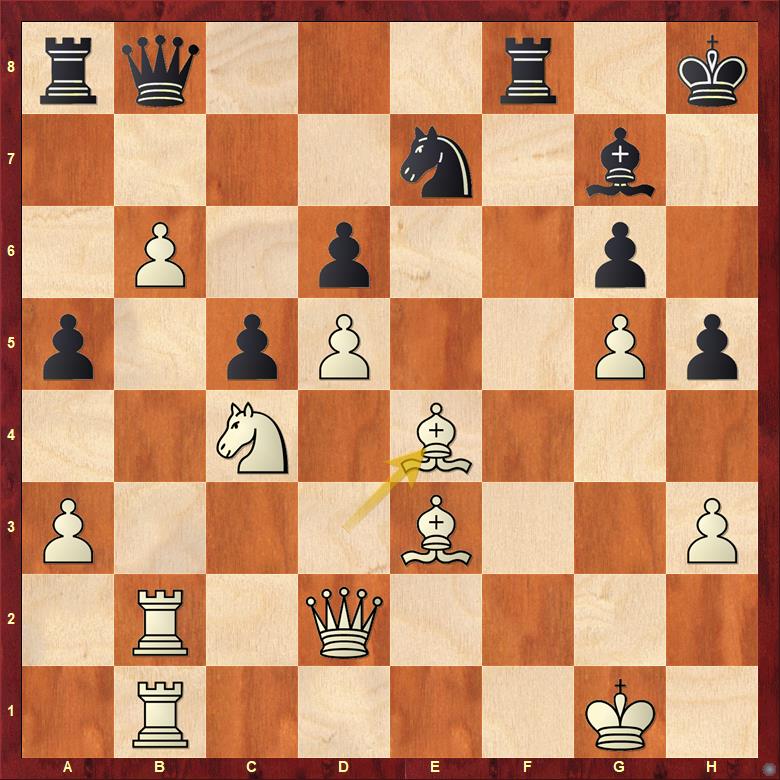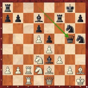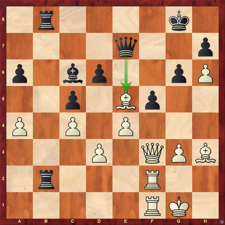 Jarda se tu rozhodl přijmout oběť kvality 32. … Sxb2 a bílá dáma tím vstoupí s velkou silou do boje. 33. Dxb2+ Kh7 34. b7 Va7 35. Db6 Teď dáma dopředu může, černé figury jí nic neudělají, naopak ona sama rozhodne. 35. … Vd8 36. Dxd8! a černý se vzdal, po braní dámy si bílý postaví novou.