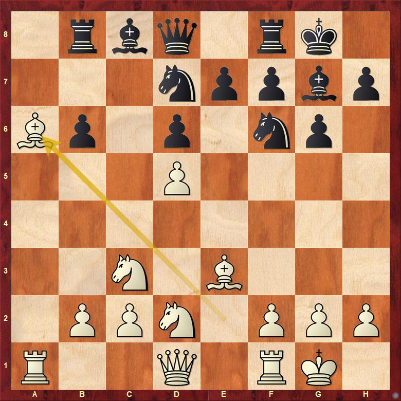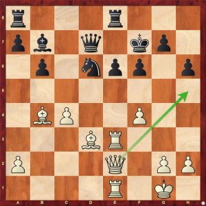 Tady je partie Aljechin – Colle, Bled 1931, tedy z turnaje, který mistr světa Aljechin vyhrál s obrovským náskokem. A zase vidíte – v útoku už jsou střelci, věž … a teprve teď přichází dopředu dáma, aby ohrozila černého krále, kterého nechrání žádná figura. (Jen pro zajímavost, partie pokračovala 29. Dh5+ Kg8 30. Dg6 f5 31. Sxd6! Dxd6 32. Sxf5! s využitím vazby.)