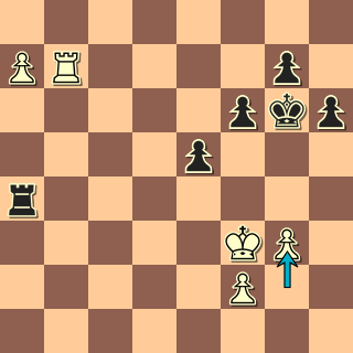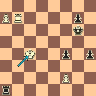 1. … f5 2. Ke3 f4+ 3. gxf4? Tím je černý h pěšec volný a může šlapat! 3. … exf4+ 4. Kd3 h5 5. Kc3 Vot tibjé optimízm! 5. … h4 6. Kb3 Va1 7. Kc4