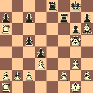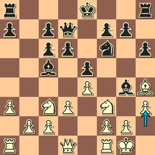 Bílý někde poztrácel pár pěšců, je čas hledat kompenzaci! 1. Vxh5+!! Kg7! Přijmout oběť nešlo. 2. Vh7+?! (2. Dh6+! = ) 2. … Kf6 3. Df4+ Ke7 4. Dg5+?! Kd6?! 5. Df4+ Kc5 6. De3+?? Po 6. Dxc7+ bych už sázel spíš na bílého. 6. … Dd4 A je po útoku 🙁 0:1