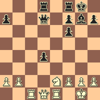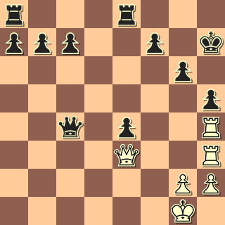 Bílý je samozřejmě vyhraný jakkoliv, převahu realizoval přesně: 1. Vxg6+! hxg6 2. Dxg6+ Kh8 3. Dxf7 Vg8 4. Ve1 c4 5. Ve7 1:0