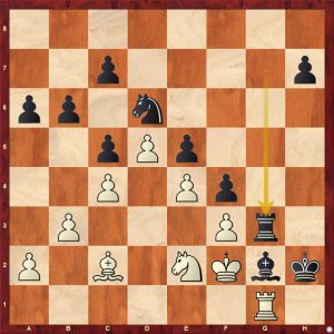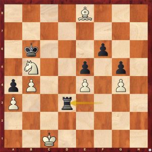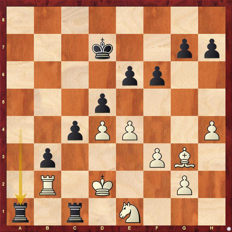 Tady má soupeř o kvalitu více, ale co má dělat? Bílé figury jsou beznadějně spoutány (po tahu jezdcem přijde Jd3 a c1D).