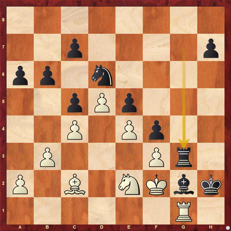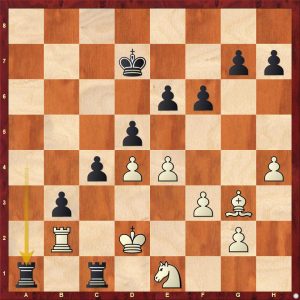 Černý má dvě figury za věž, ale jak stojí … Můžete si vyzkoušet, že je ve všech variantách zcela ztracen. Hrozí hlavně 30. Vc8+ a po Je8 31. Jxd6. Asi nejlepší je 29. … Kg8 a po 30. Jxd6 Sf8, ale já ho vůbec nemusím pouštět do hry, klidně jde 30. Kf1 Sf8 31. Vc8 s dalším pochodem krále až na c6.
