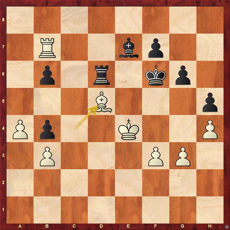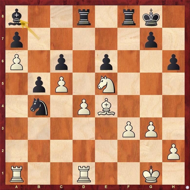 Dvojče předchozí partie: po 29. b5 je střelec na a8 stejně smutný jako ten na diagramu výše.