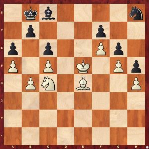 To není koncovka, ale to nevadí, ty zásady platí všude. Černé figury jsou prostě zoufalé a nedá se s tím nic dělat, po 19. … a6 20. Jb6 axb5 21. Jxa8 g5 22. Jb6 se nerozmotaly.