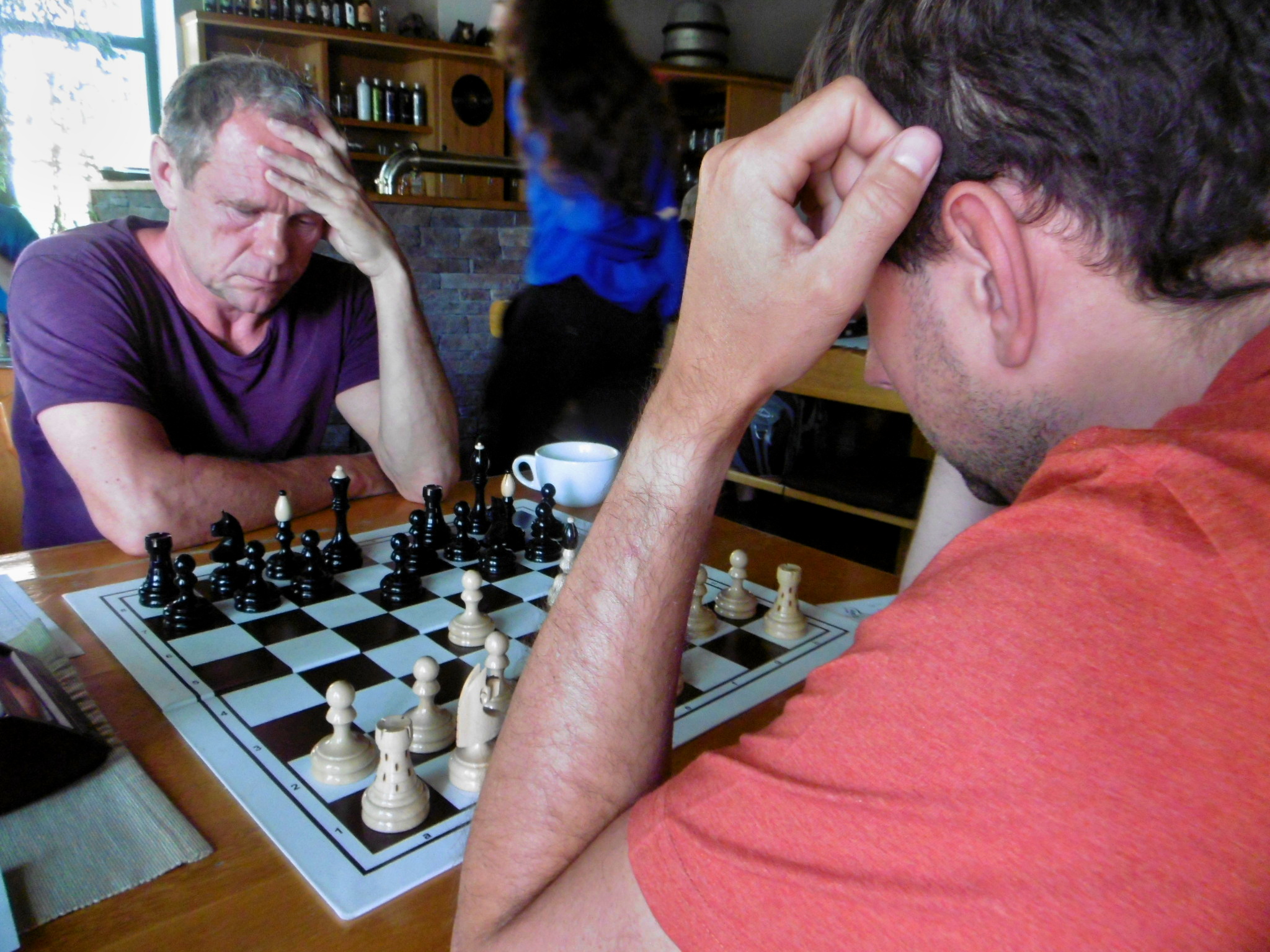 Holásek Pavel – Holásek Vojtěch 1:0 Vojta je mistr improvizace a šejdění, nicméně u hráče výkonnosti 1950+ by to nějakou teoretickou erudici asi chtělo a díry jsou občas z kategorie Macocha. Tady v ruské s Jc3 nevyměnil, nýbrž „pokryl“ (Sf5??), o koně přišel a bylo po partii.