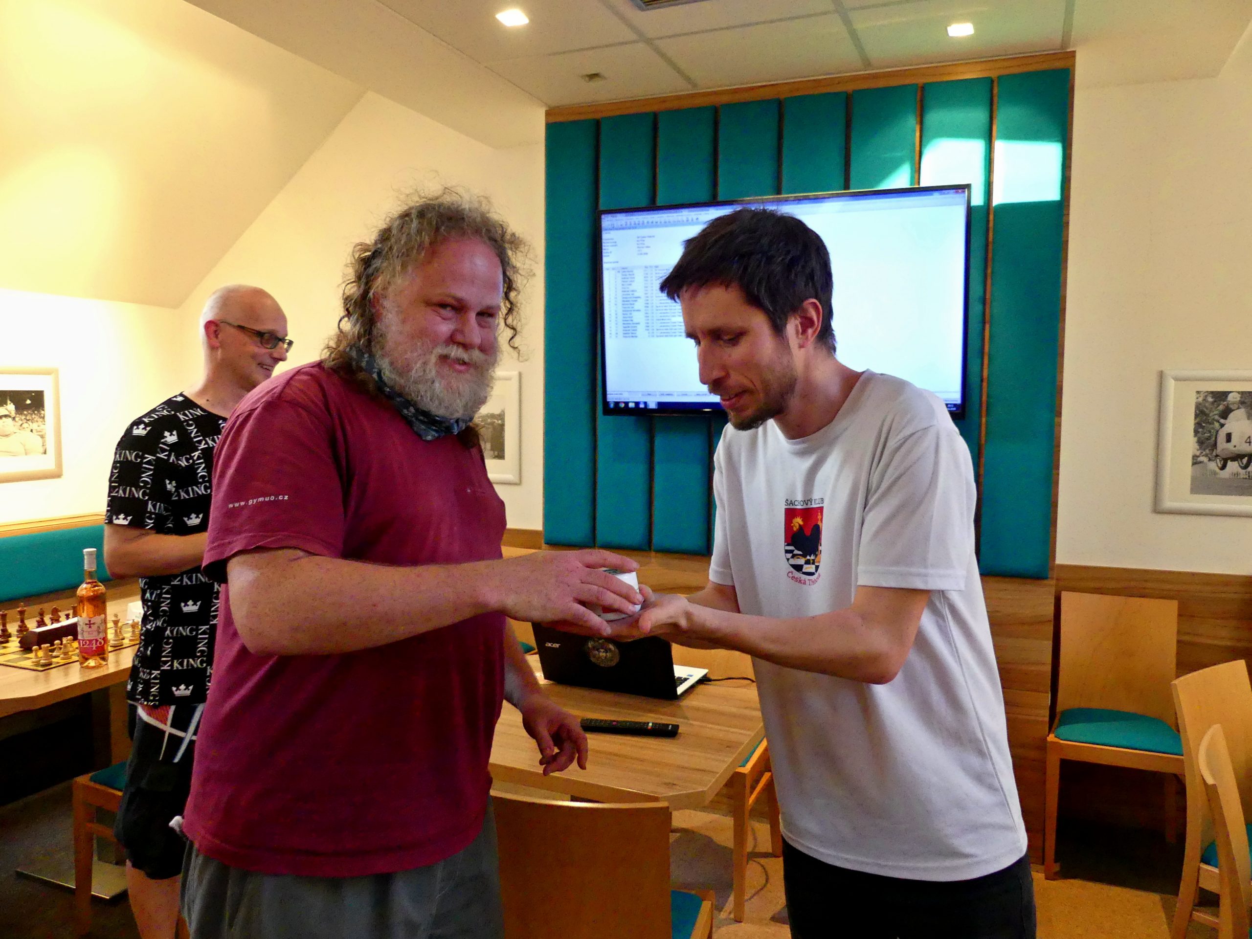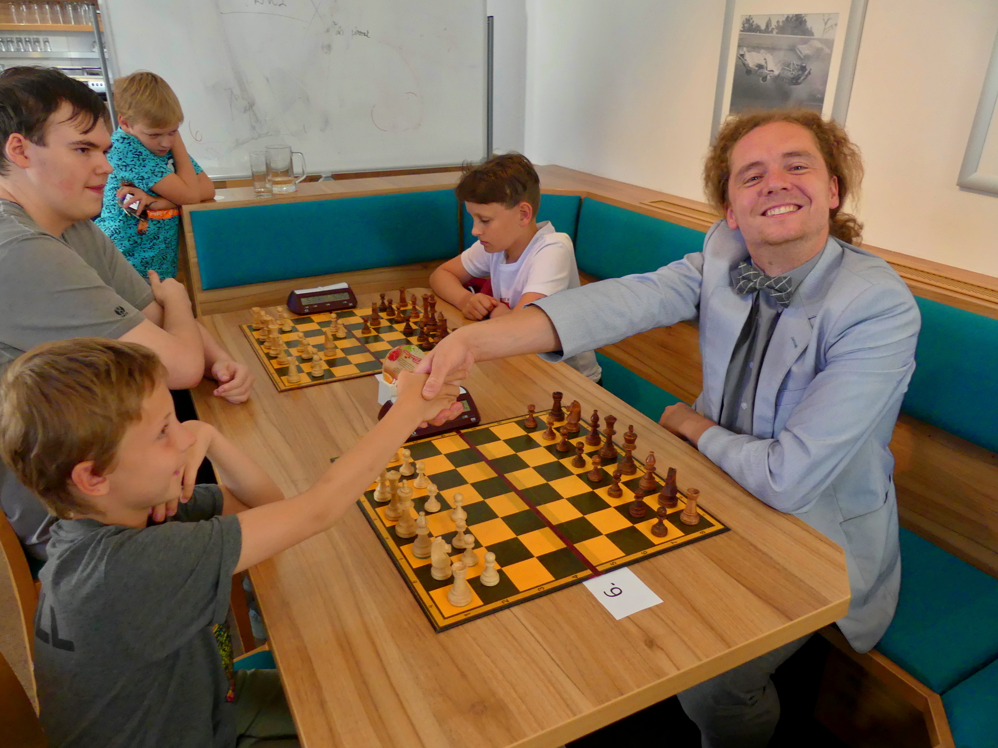 V přátelské atmosféře sedmikolového turnaje vyhrál suverénně způsobem start-cíl Marian Sabol, který se neobtěžoval svým soupeřům pustit byť jedinou remízu 🙂 5,5 měl pouze stříbrný Martin Šmajzr, z dvojice pětibodových měl lepší pomocné hodnocení Pavel Holásek před vysokomýtským Lubošem Ptáčkem. Takže dvojblok Mýto – Ústí na prvních čtyřech postech a domácí Třebová mimo bednu. Zuřivý reportér mimo desítku, stylem lážo-plážo (focení, pivo), ale zejména s velkou hrdostí na juniora (se šachovým jménem Marian 🙂 ). Ten hrál po dvou mládežnických turnajích svůj první dospělý blicák, herně to vůbec nebylo špatné, jen taktak neporazil tátu 🙂 a nebýt kolapsu v jasně vyhrané partii posledního kola, mohlo to být ještě o bod lepší. Důležité je sbírat zkušenosti a vymazlený českotřebovský turnaj je ideální příležitostí!