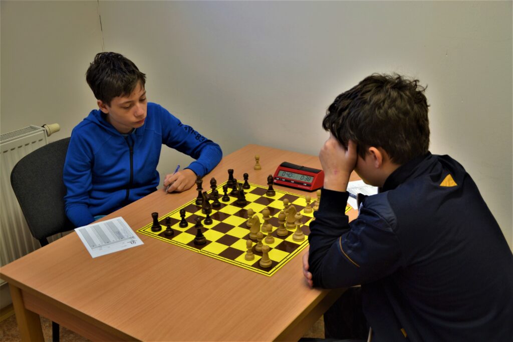 Po hodině hry už prohráváme. Matěj i Marian hráli pěkné zdravé aktivní šachy, ale v rozhodujících fázích přicházeli o materiál. Taktika, taktika, nenastavovat figury. 0:2