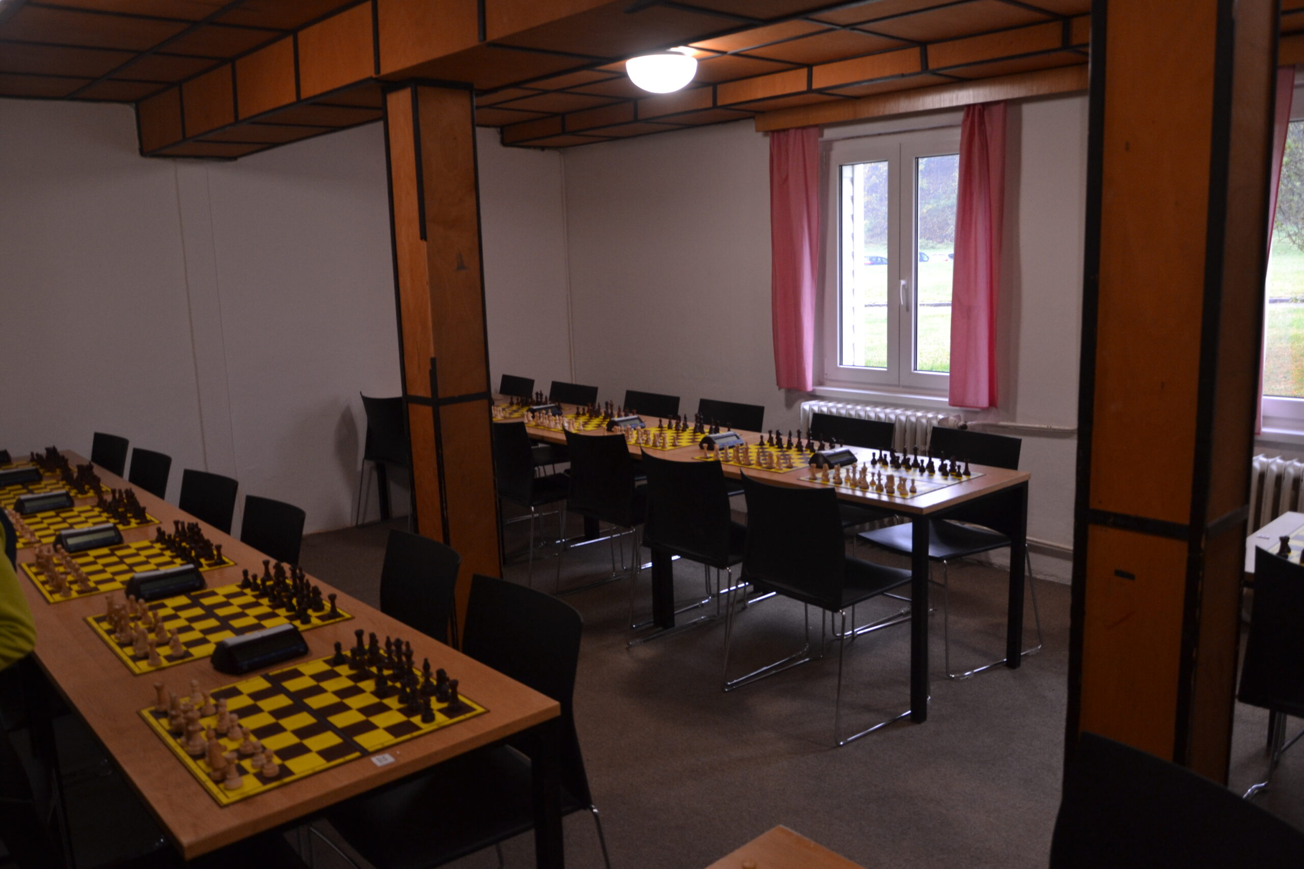 Obrázek ukazuje hrací místnost jedné z kategorií (nebylo ještě známo, které) 8 minut po plánovaném začátku kola. Čas předepsat partiář, soustředit se na hru – jo pardon, ono se stepuje na chodbě a ono se neví.