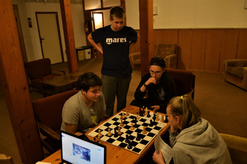 Vracel jsem se na ubytovnu s výhrou, ještě předtím vyhrál Vojta, těšil jsem se, že budu sbírat hezké výsledky. Ale tady to tak veselé nebylo. Matěj remis, prohry Tomáš, Domča (asi ji do statistik nezapočítám 😉 ) a Verunka. Takže 2,5/6, hraje Soňa a Vítek. Mezitím se tu ovšem odehrával chaos hodný delší reportáže.