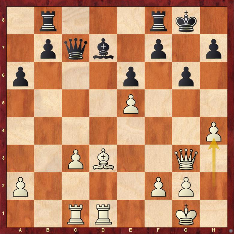 Černý zápasí jak s horším střelcem, tak s oslabenými černými poli kolem krále. Na poslední tah 20. h4 ale reagoval neopatrně 20. ... h5? a Verunku nemusel nikdo přemlouvat k oběti 21. Sxg6! Za střelce dostane tři pěšce a zejména nekončící útok. Aktivita neustala ani v koncovce, závěrečný diagram je výmluvný:
