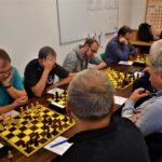 Sicilská s 2. c3 d5. Petr měl s izolákem v některých fázích slušnou výhodu, ale hrál to bez znalosti typových pozic („viděls někdy dámský gambit?“ ptali jsme se ho v analýze) a vznikla rovina. Černý ale nabídl remízu zrovna při tahu, který znamenal osudné jednotahové přehlédnutí. „Nabízím remis,“ pravil. Petr zahrál 31. Dxh7+. „Tak to nebude remis,“ konstatoval s hořkým humorem černý a vzdal se. 1:0