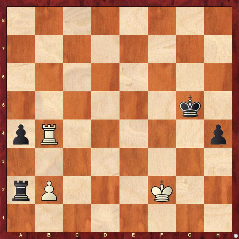 46. Vb5+? (46. Kf3=) 46. … Kf6! 47. Ke3?! h3 48. Kf3 h2 0:1 Tady jsme vyhráli zápas.