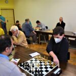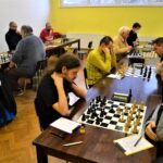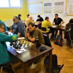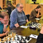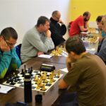 Hádankou pro nás byla i sestava domácích. Chotěbořské áčko hraje 1. ligu, jenže moravskou skupinu, kde jsou víkendová dvoukola, takže jejich sestava se může výrazně lišit podle toho, jak se to kryje – samozřejmě, že na zápas s námi se to nekrylo, jak jinak. Taky jsme tušili, že jejich mládež hraje ve Špindlu polofinále. Takže jsem strávil večer přípravou na oba Tůmy (máme s Jiřím nepříliš teoretickou diskusi v sicilském gambitu, totiž já vždycky vařím z vody a slibuju si, že se na to už kouknu) … abych pak hrál s dalším v řadě Vrkotou.