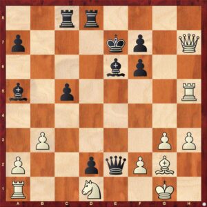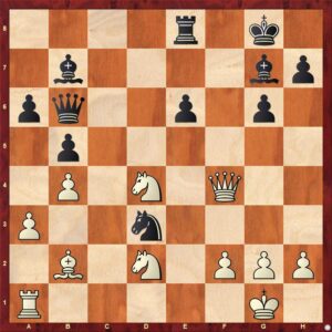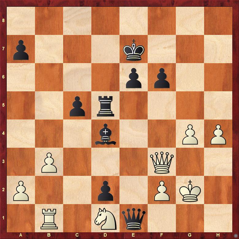 … a trvala i tady, nejbrutálněji šlo 45. … Sxf2!! 46. Dxf2? De4+, jen ne 45. … Ve5? 46. Db7+ a dáma ožila.
