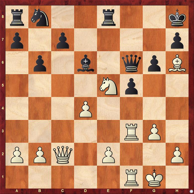 Tady přišlo přísné 19. e4! Sxe5 20. dxe5 Dxe5?! 21. exf5 gxf5 22. Vxf5 a je skoro po partii.