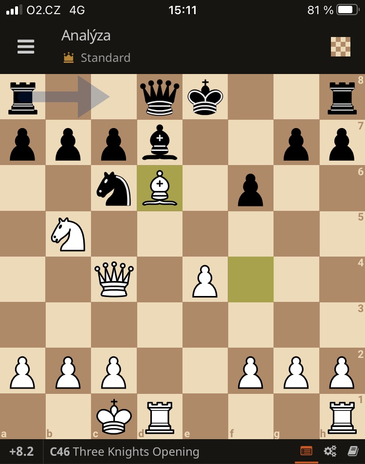 Zanedbaný vývin se černému vymstil, po brání na d6 to skončí matem nebo ztrátami materiálu: