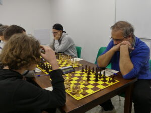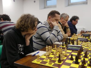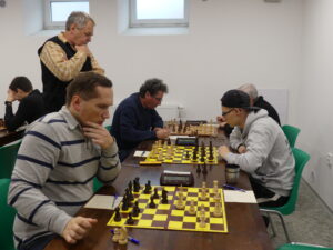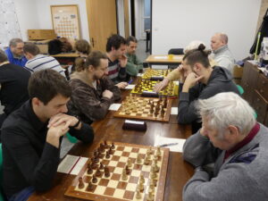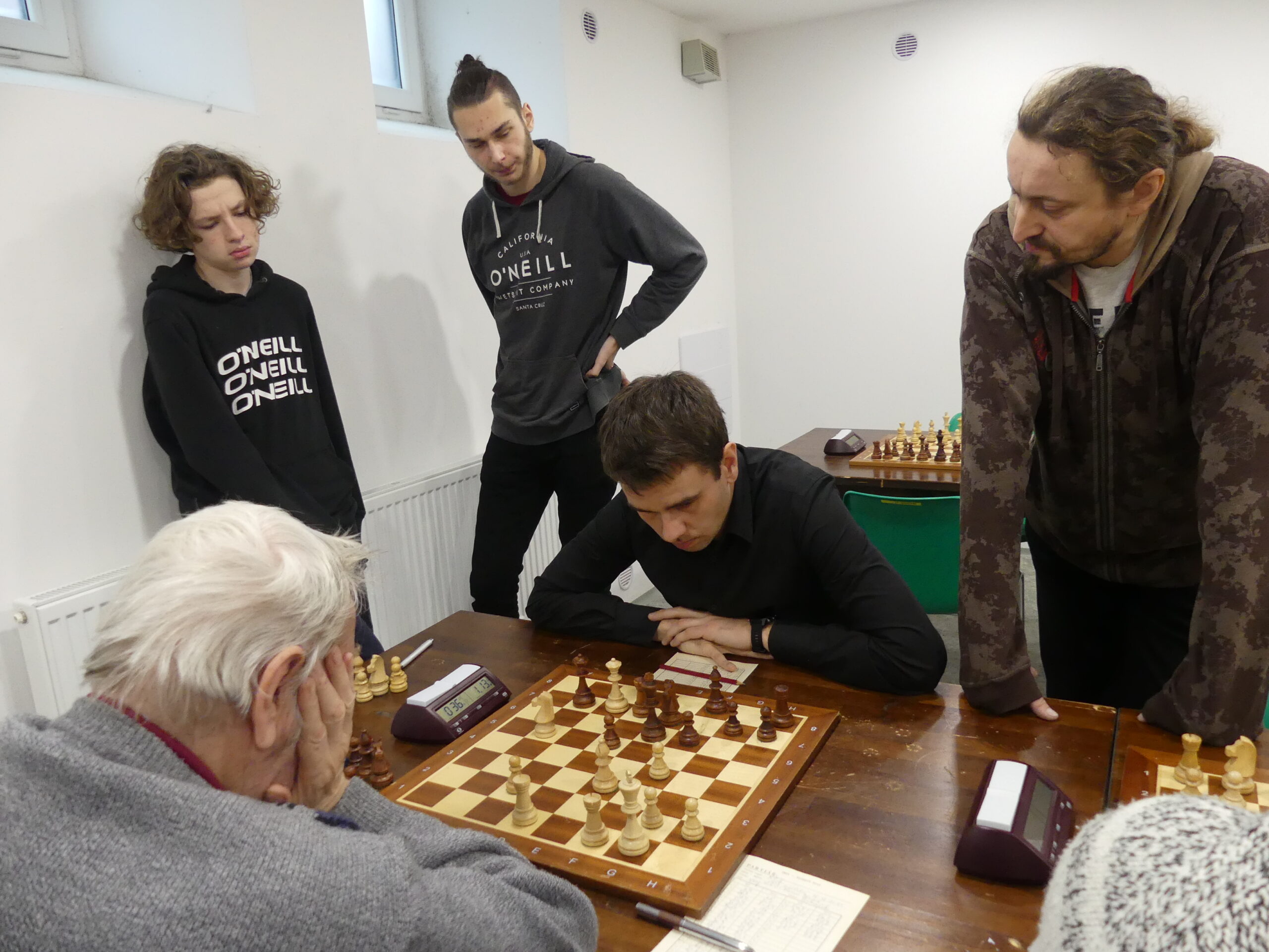 Ke čtvrté adventní neděli přistoupila půlka účastníků ve stylu „pokud a dokud můžeš, remizuj“. U Jirky a Davida ještě v pořádku (prvně jmenovaný stál ze zahájený děsně, kapitán prostě vyrovnal), u Soni se to ale v konečné pozici určitě zkoušet dalo. Bohouš srdnatě bojoval, minimálně dvakrát remízu odmítl, ale soupeř ho s nabídkami umořil. A tak jsem musel zabrat já, ale pořád to bylo málo, protože Jirka na druhé neuchopil pozici dobře a soupeř ho přejel dost suverénně. No a protože Smoldovi na třetí utekla výhoda mezi prsty a víc než remíza z toho nekoukala, musel nás ke třem bodům dotlačit Jarda. Daleko po sedmdesátce ale pořád umí, nechybí mu bojovnost a cit pro figurky, paráda…