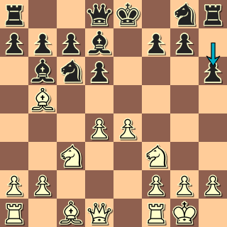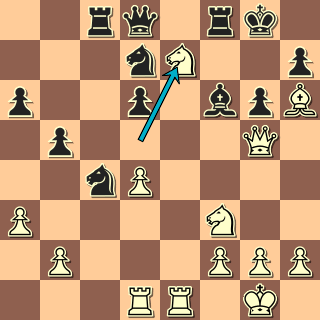 9. Jd5 Jge7 10.Jxb6 axb6 11. Se3 0-0 12.Dd2 f5?! pro obranu krále uvolňuji sedmou řadu, ale hodně oslabuji diagonálu a2-g8, lepší bylo 12. … d5 13.Sc4+Kh8 14.e5 Ja5 15.Sd3 Jd5 16. Sxh6!