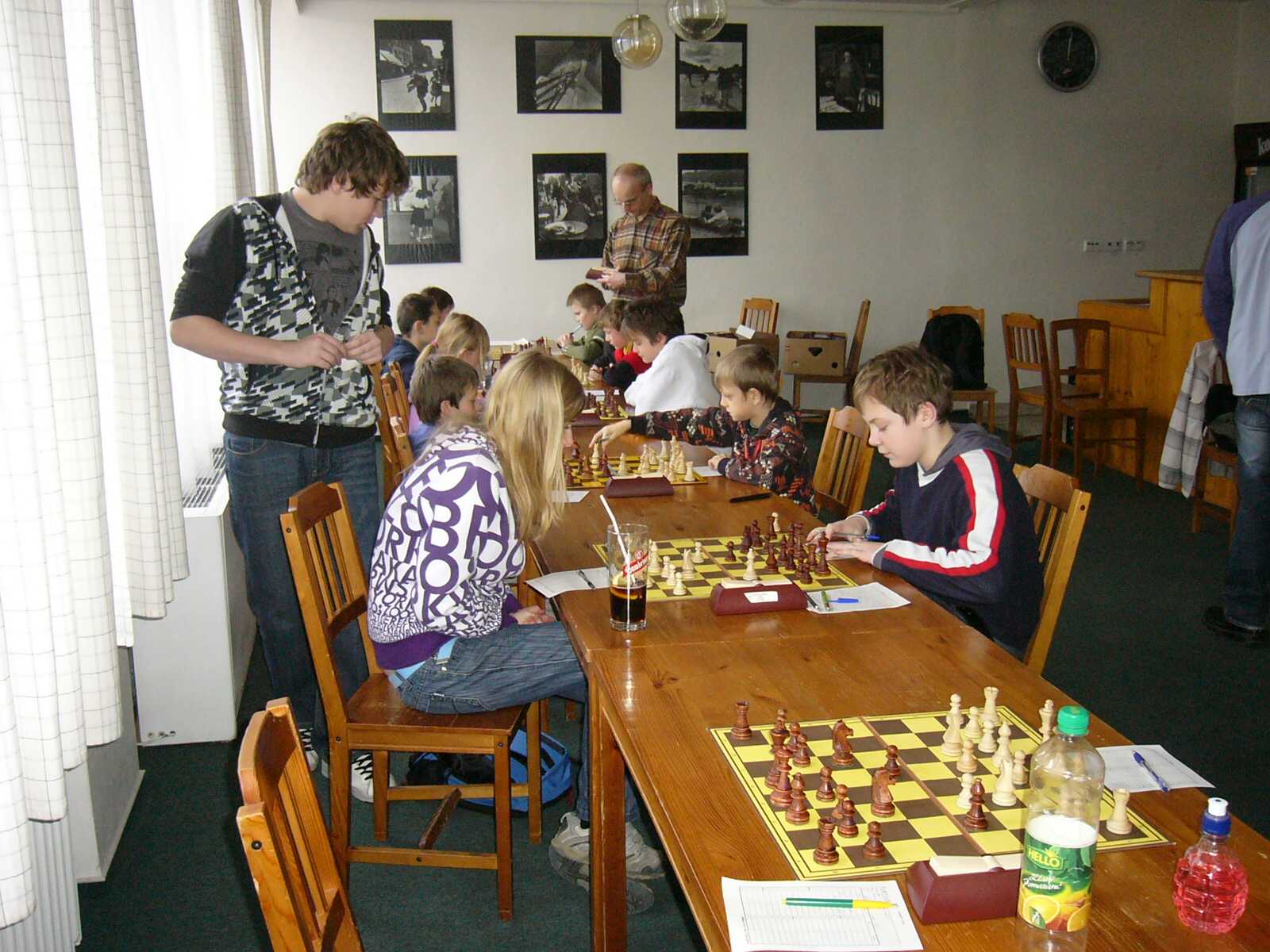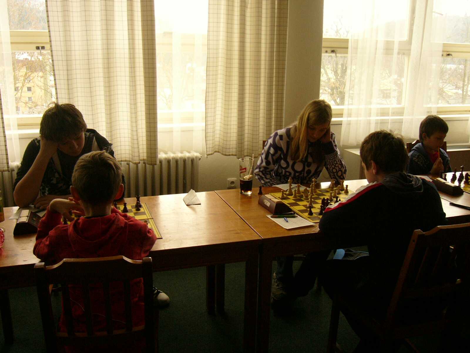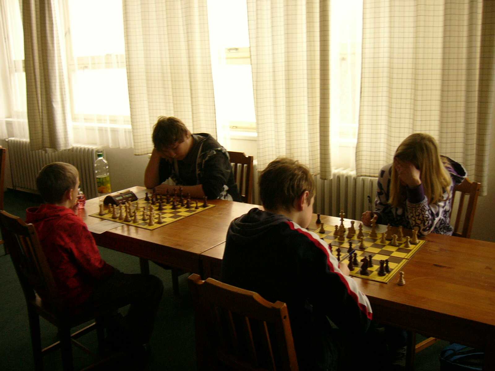 Vzhledem k neúčasti Holásků to bylo tedy spíše torzo družstva, kde, pokud se nepletu, hráči na posledních třech šachovnicích nastupovali poprvé k partii se zápisem. V prvním kole nás čekalo družstvo Litomyšle, které nastoupilo pouze v pěti hráčích a Katka Dudlová si tak připsala rychlý bod. Partie se vyvíjely všechny poměrně dobře, což ovšem na této úrovni ještě moc neznamená, jak se brzy ukázalo. Veronika Šmajzrová na 4. šachovnici nejprve soupeři posbírala dvě figury, pak ale přehlédla dvoutahový mat (soupeř tedy také, dal ho a ani nevěděl, že to je mat 🙂 ). Další obraty se už naštěstí nekonaly a tak postupně Jirka Píše a Martin Paukert (hrál na 3. šachovnici místo obvyklé šesté…) přidali další body. Vítězství jistila remízou Katka Šmajzrová (v pozici, kde se mohlo ještě leccos přihodit) a Petr John završil vítězství našeho družstva v poměru 4,5 : 1,5.