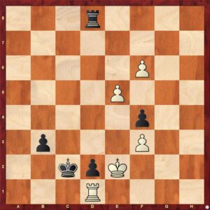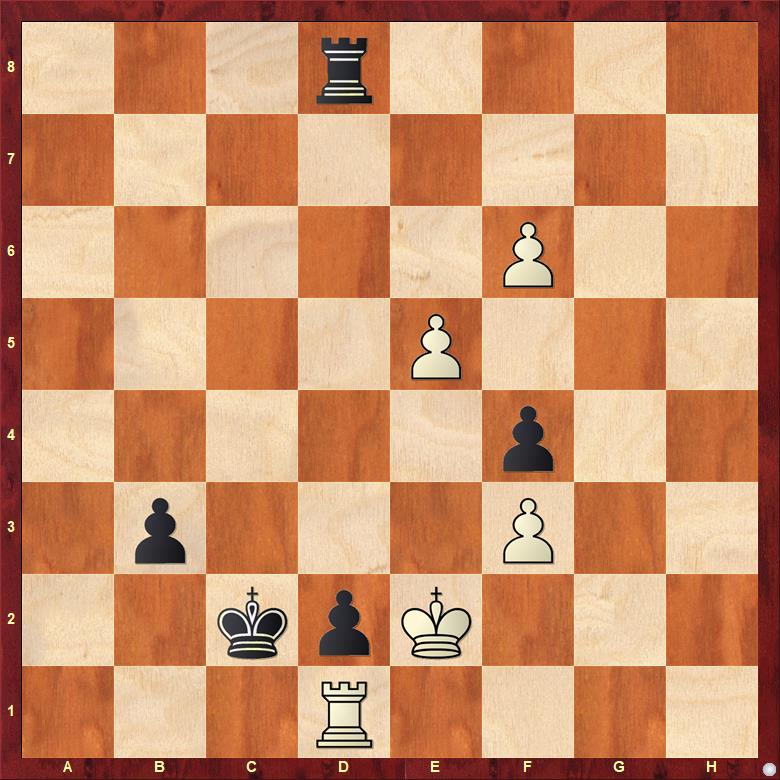 Tady zahrál na vteřinách 62. e6? a po Vd6! rychle prohrál, šlo ale 62. f7! b2 63. e6 Vd6! (po 63. … b1D 64. Vxb1 Kxb1 65. Kd1 bilý ještě vyhraje!) 64. f8D Vxe6+ 65. Kf2 Kxd1 66. Db4=.