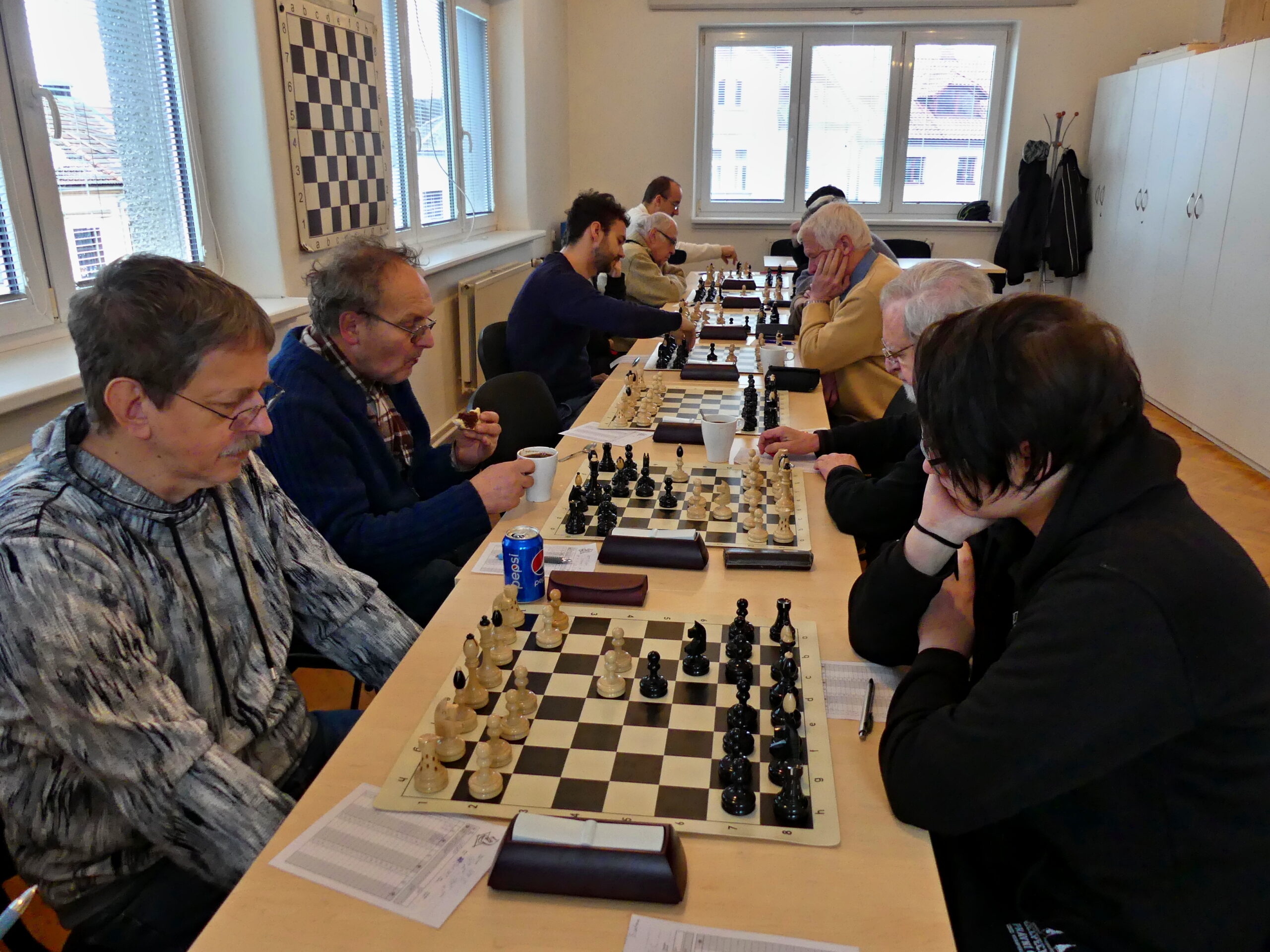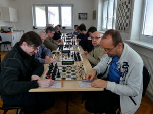 V neděli 9.25 vyčkávám auto u ÚP, přijíždíme s komfortním předstihem a začínáme přesně na devátou v útulné a nadstandardně vybavené klubovně (mj. full automat na kafe). Domácí s prvními čtyřmi a rozhodně ne slátaní, nám chybí ze základu jen dva ligisté a ratingově jsme jednoznačnými favority, zejména na zadních šachovnicích.