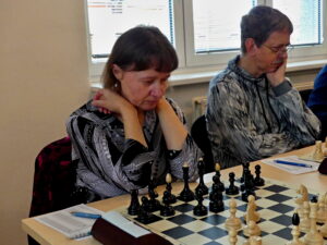 Pokorný – Lorencová 1:0 Z paměti jsem vylovil, že soupeřka staví černými tentýž typ pozic (d6, Jbd7, e5), takže žádné bláznění a trpělivě vpřed. Bílá výstavba okopírována od velmistra Smejkala (králka s g3), nejdříve centrum vykryté figurami, pak profilaxe (h3!) a nástup f4. Černá se zkusila vykroutit zajímavou obětí – nejdřív figura za dva pěšce, ve výsledku dva střelci za věž a dva pěšce. Od oka to vypadalo zajímavě, jenže soupeřka pěšcovou majoritu nerozjela a rozhodl propastný rozdíl v aktivitě figur, na krále si po černých polích posvítila dáma z políčka… a1 🙂