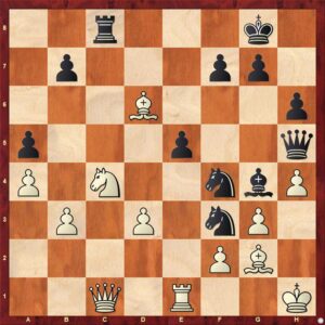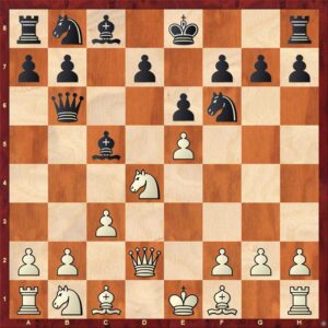 S Machlowskim obvykle hraju já a bývá to strašlivá divočina. Paulsen s předčasným 4. … Db6, to jsem nikdy neviděl. Vítek ale viděl duchy, kteří tam nebyli, a tahem 6. Dd2 (při střelci na c1) dal soupeři dobrý důvod, aby ho podcenil. To se záhy ukázalo, když černý skočil optimisticky koněm do centra