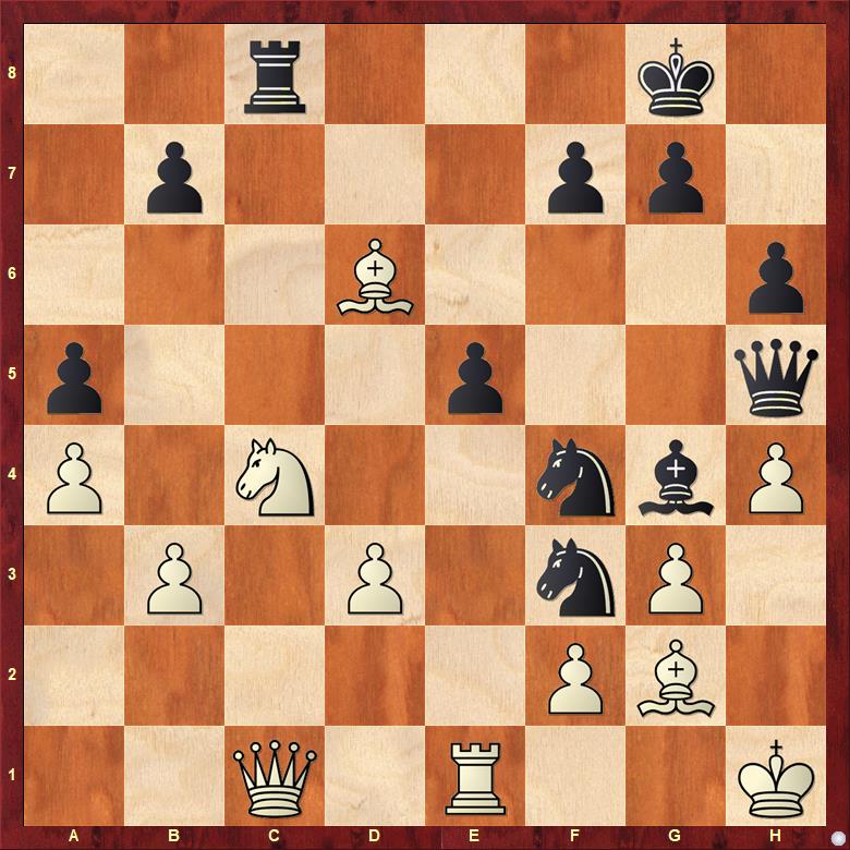 Pak si Vítek udržoval převahu, byť ne po úplně přesné hře (hrát většinu partie na pár minutách není ono), soupeř mu usadil koně na d3 a Vítek za něj vrátil kvalitu, takže měl S+J za V+p. V kisně však dokázal soupeře zatlačit figurama a po kontrole už zcela dominoval: