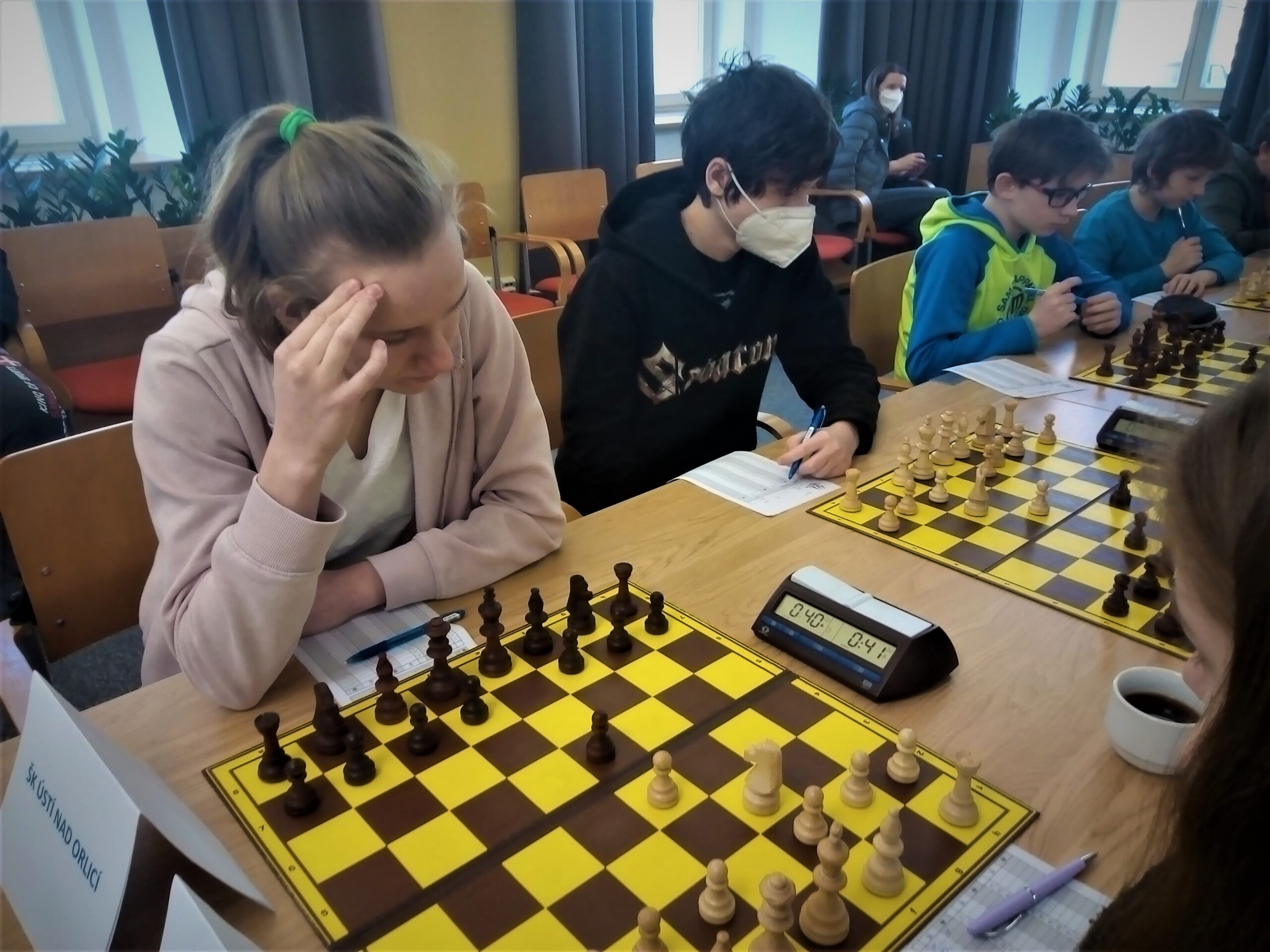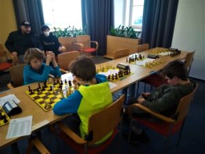 S přípravou sestavy do dopadlo podobně mizerně jako poslední dobou se sestavou dospělých. Sekunda byla na lyžáku, odpadlo tedy duo Křížek – Hanák. Náš Tomáš poctivě trénoval s Vojtou Eliášem (totiž hráli o přestávkách ve škole holanďany), ale ve čtvrtek tercie ještě spadla do karantény, snad do poslední karantény, co nás s covidem čekala, a rázem jsme nebyli ani kompletní. Na kroužku mi ještě Honza Skubi oznámil, že jedou na hory … a byli jsme čtyři. Naštěstí se pak jeho rodina obětavě rozmyslela a Honza jel s námi (díky!), ale i tak jsem čekal dost pochmurný den.