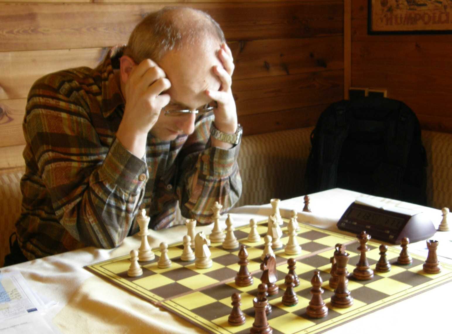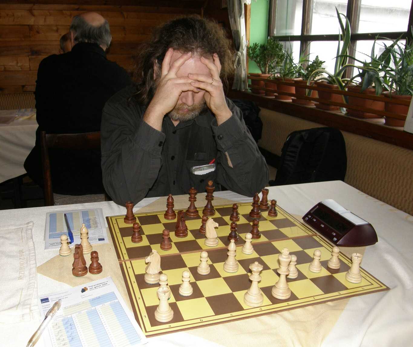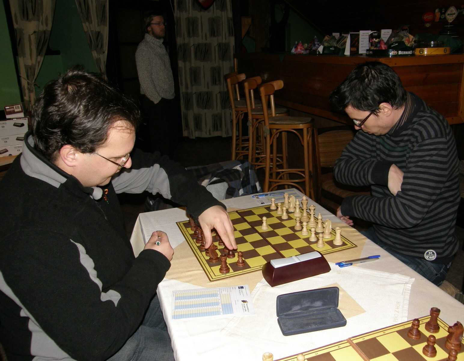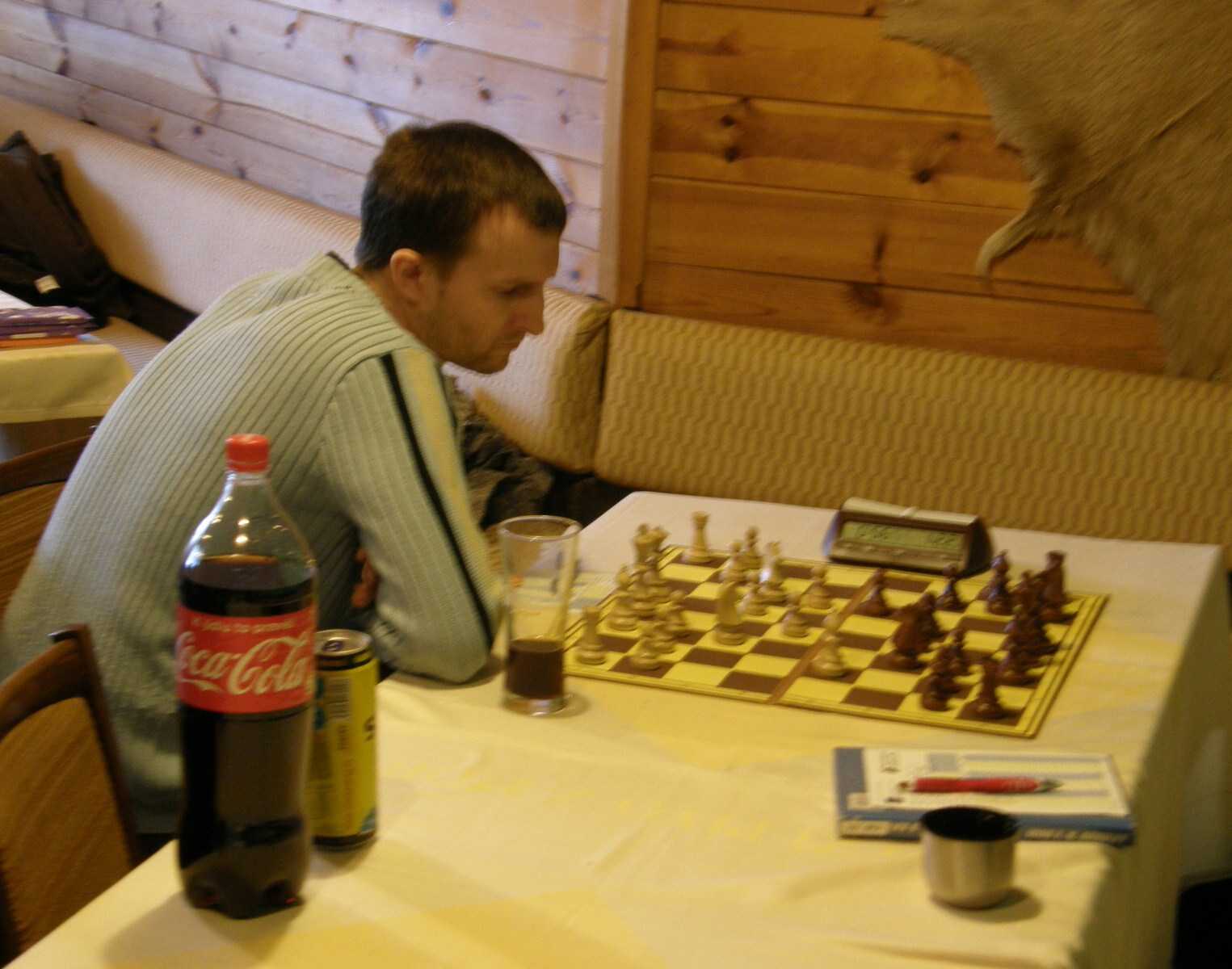 Petr Mareš (2008) – Milan Kratochvíl (2145) 1/2 Tradiční bouda, kde jsem viděl až situaci, kdy měl černý za věž a nějakého pěšce dvě lehké figury. Dvojice černých střelců působila velice silně a Petr mohl být asi rád, že se dostal do koncovky „jen“ bez figury (za pěšce). Tu pak dokonce zremizoval!