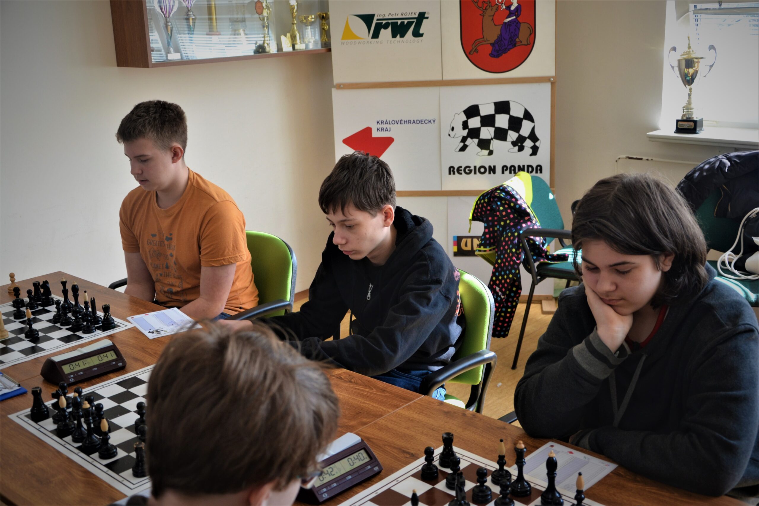 Vít Růžička a Matěj Křížek (oba 0/2) hráli trochu podobně, oba se snaží o útok, ale sem tam jim nějaká figura zůstane nekrytá, takže končí v beznadějných koncovkách. Nadějně vypadala hlavně Matějova první partie, kde měl dlouho kvalitu navíc. Pořád znova: je třeba řešit soustavně diagramy a při partii prověřovat hrozby. Takové partie mohou být cenné pro další růst.